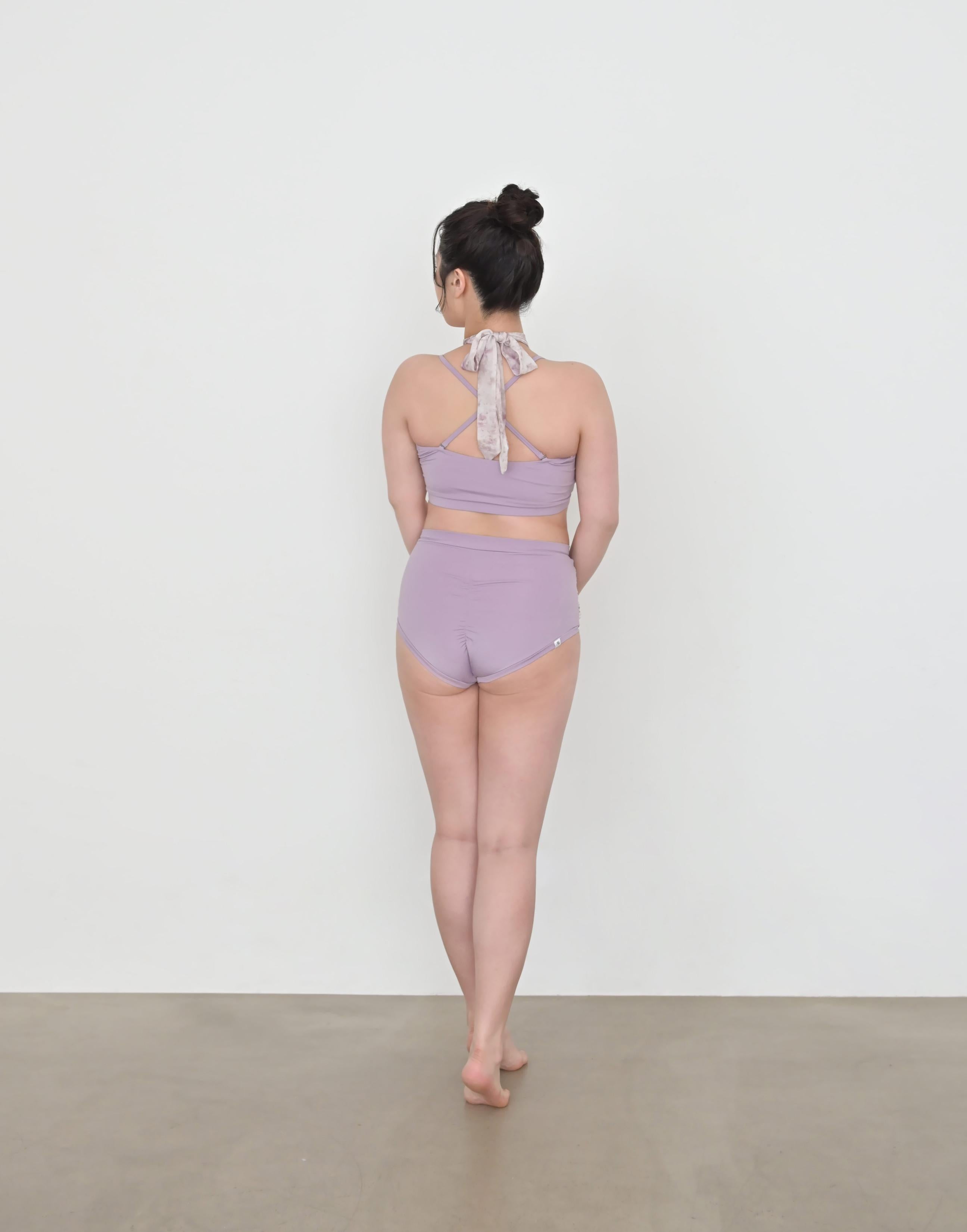 Features removable straps to prevent slipping while reducing the neck strain typical of halter tops.