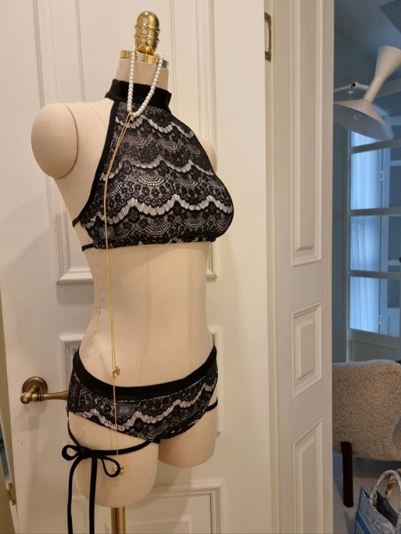 The not-too-excessive shiny lace creates a beautiful silhouette that follows the curves of a woman's body.