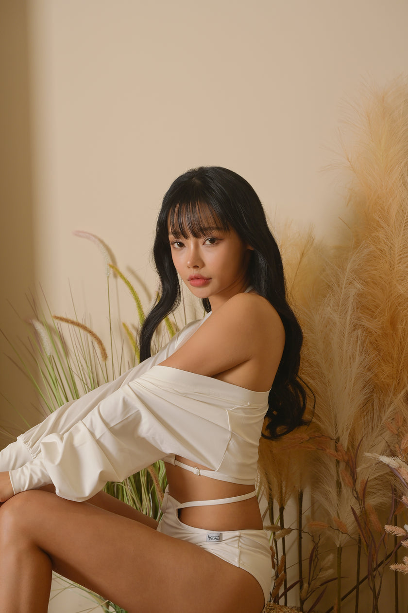 上下のストラップが特徴的なデザインで、セットで出たボレロが魅力的なポールウェアです。